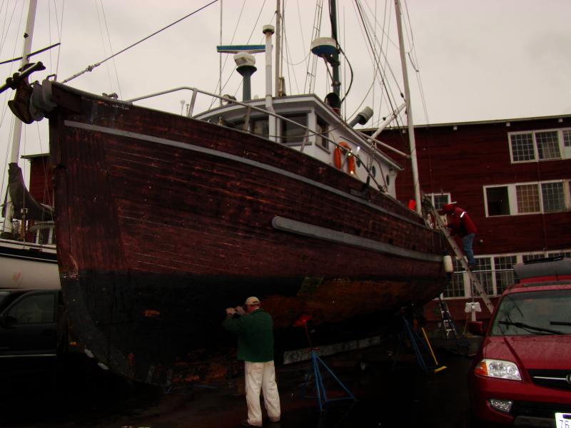 STEM – important to inspect where the planking meets the stem; especially at the water line is critical; often difficult to determine extent of water damage and rot, specifically if the rot is in the rabbet; look for cracked paint, or evidence of putty over a seam and painted; look for evidence of new fastenings, i.e. additional bungs; the hood end of all the planks; stems also tend to rot from the top down if not properly sealed; fasteners used in the “fore foot” should be inspected for bleeding and/or rust blooms as well as the gap between the stem, fore foot and keel pieces; insure there is no evidence of planking repairs with short planks or butts improperly staggered;